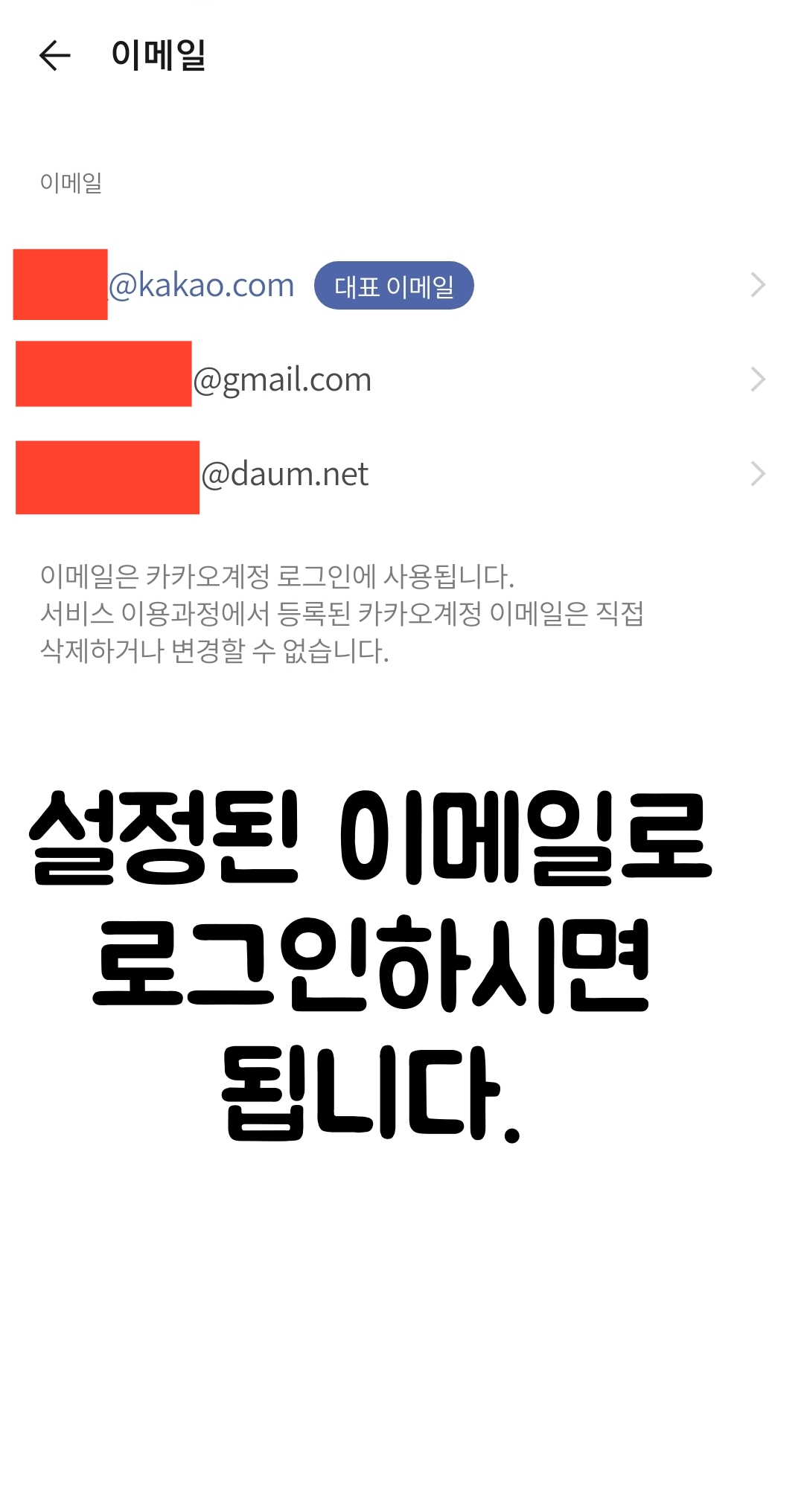 이렇게 하시면 자기 아이디를 찾으실수가 있습니다.저는 카카오 이메일과 가입 이메일 다음이메일을 연동해둬서 이메일이 3개로 나오는데요 일반적으로 아이디는 1개이실겁니다.그 메일주소가 아이디로 비밀번호는 따로 설정해두셨거나 PC카카오톡 메인에서 비밀번호 재설정해서 들어가시면 될거같습니다.