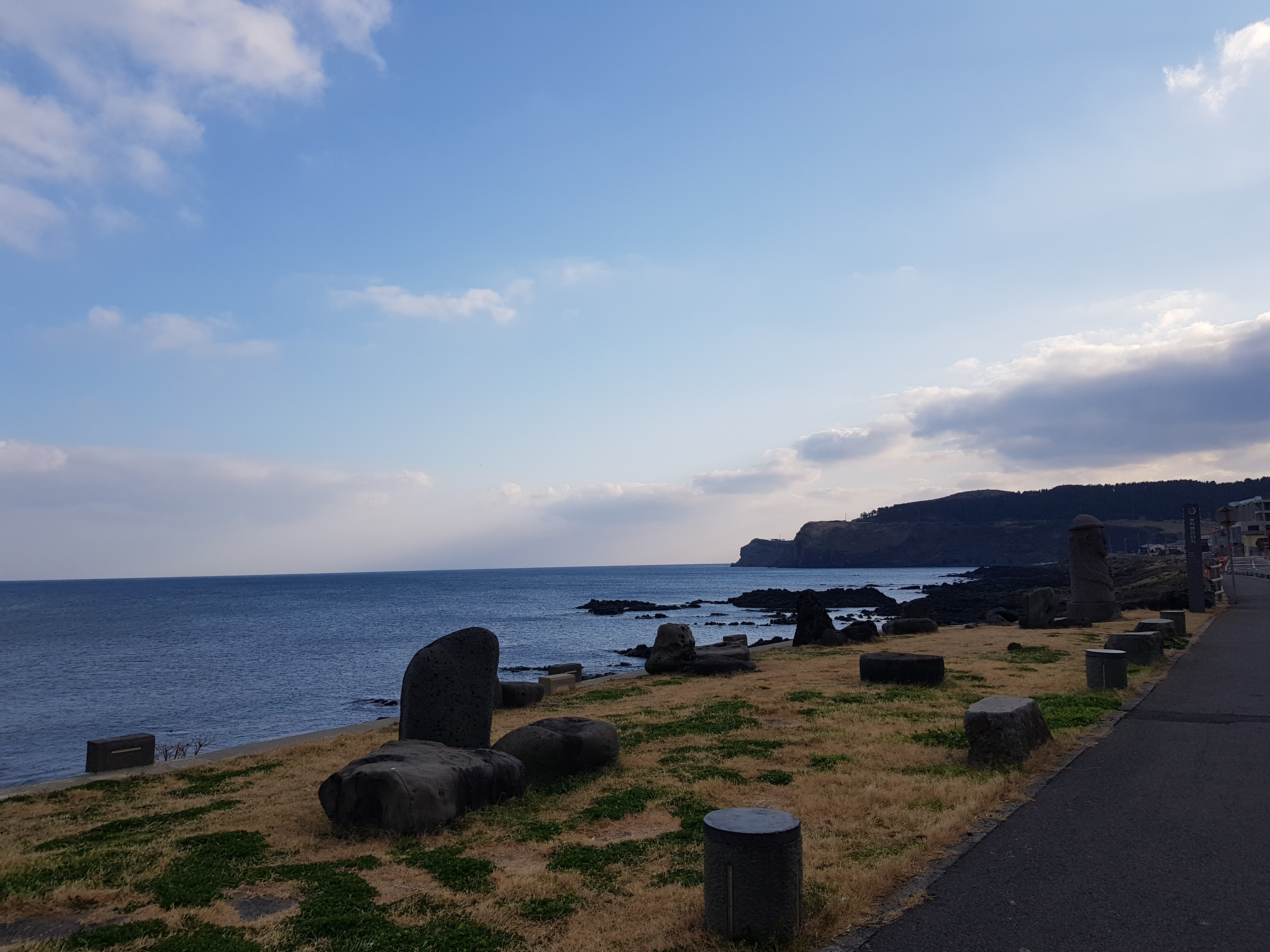 서귀포시에서 마라도 배 타러 가던 중 만난 바닷가입니다. 멀리 보이는 무인도가 참으로 멋스러운 곳입니다. 제주도 거주민들과 관광객들은 남쪽과 북쪽을 중심으로 가장자리로 나갈수록 인구수가 차이가 엄청납니다. 제가 추천하는 이곳도 대한민국의 최남단 섬 마라도를 거쳐가는 몇 개의 동네 중 하나일 뿐입니다. 하지만 그것마저 매력이 있는 곳이네요. 많은 발전은 하지 않았어도 옛날의 제주도의 모습을 그대로 간직하고 있는 동네여서 좋습니다. 1990년대 초반의 제주도 느낌이 물씬 나는 이 동네에는 교통체증도 사람들의 북적임도 없는 느린 동네 같았습니다.