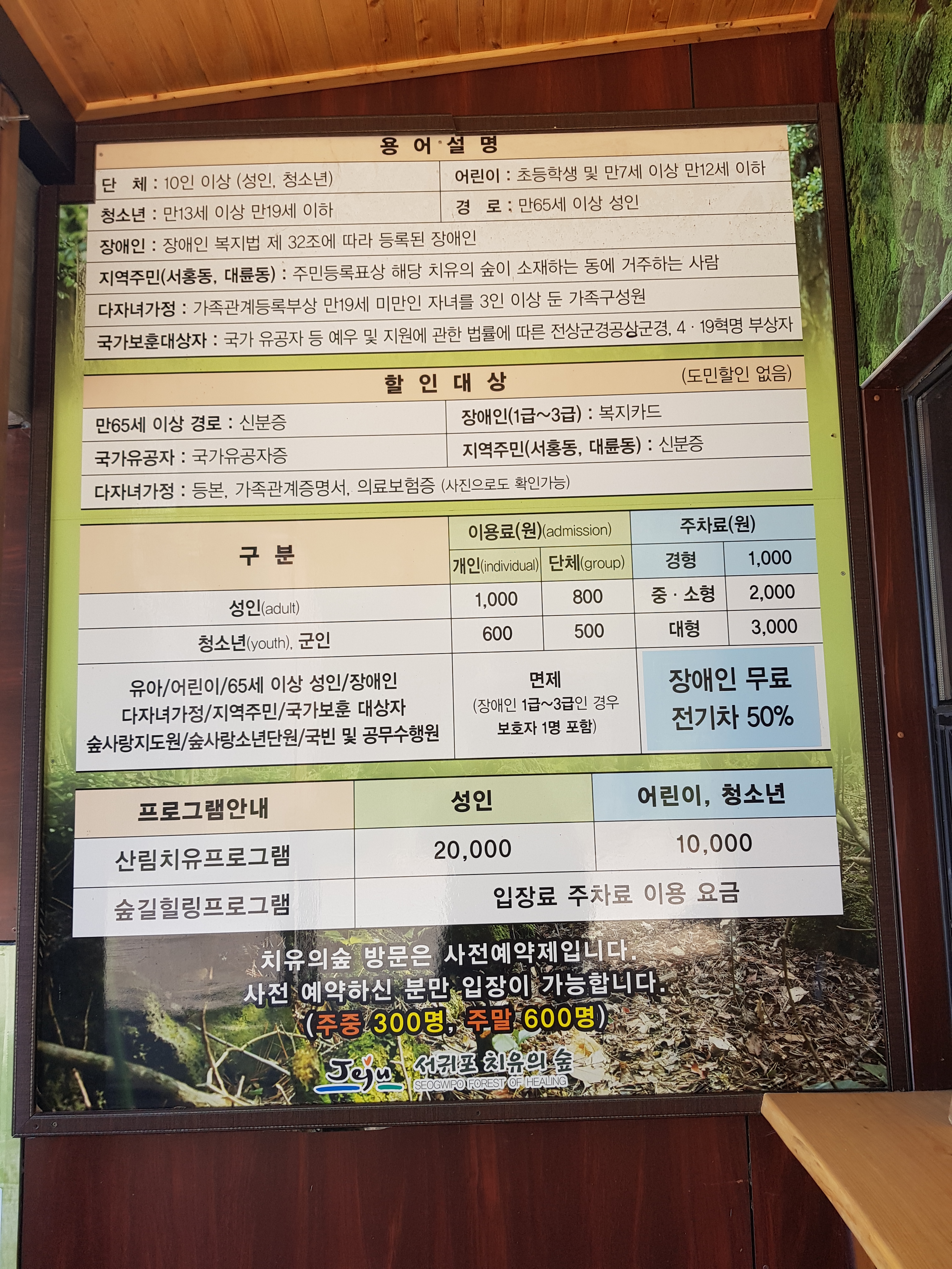 서귀포 치유의 숲 가격안내