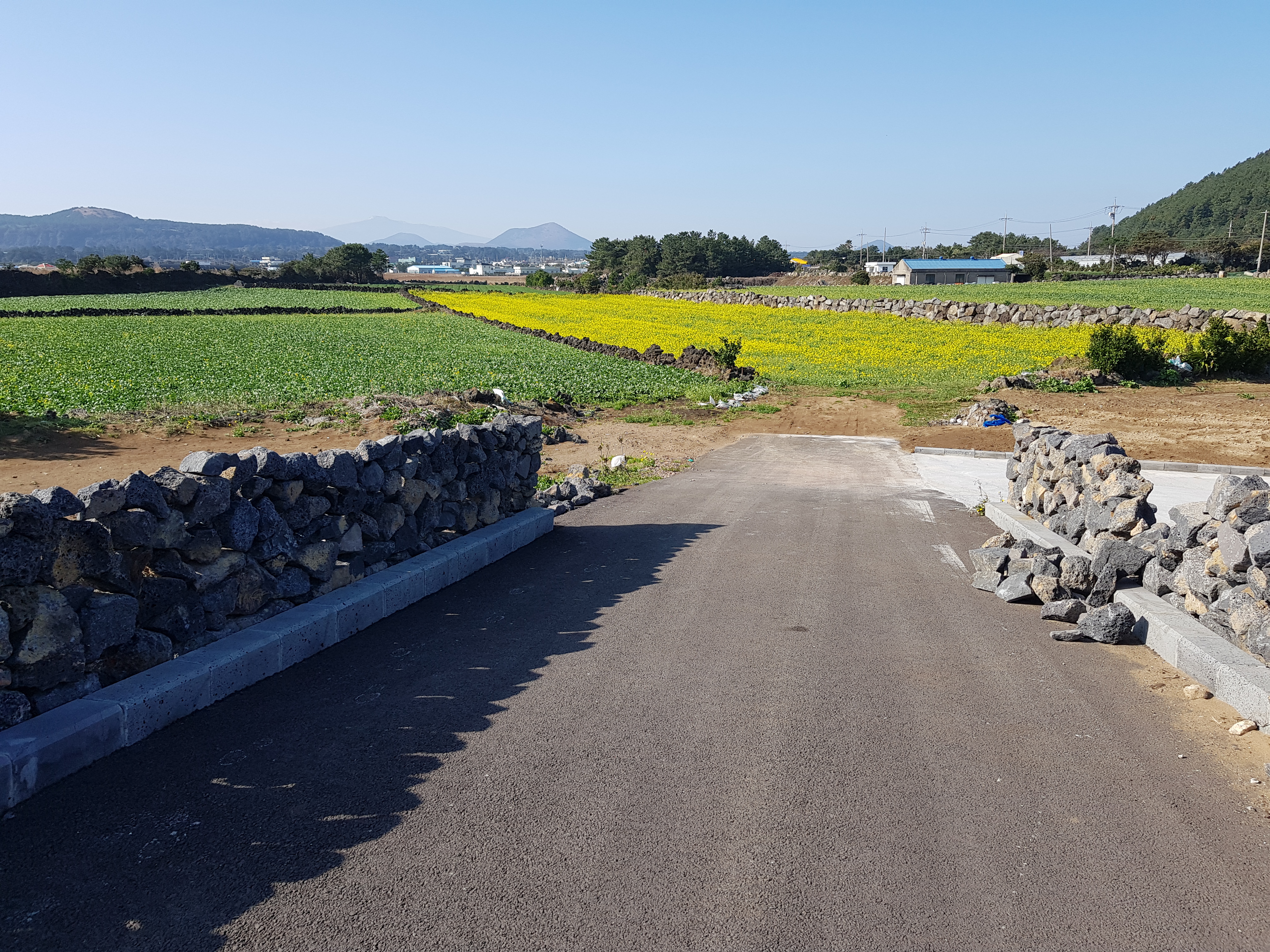 바로 눈을 돌리면 가득 피어난 열무와 유채꽃이 인근이 널리 재배되고 있어서 파란 하늘에 충분한 색감을 더해줘서 눈이 즐겁습니다.