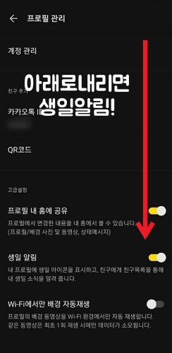 생일 알림을 온하면 친구들에게 생일이 보여지고